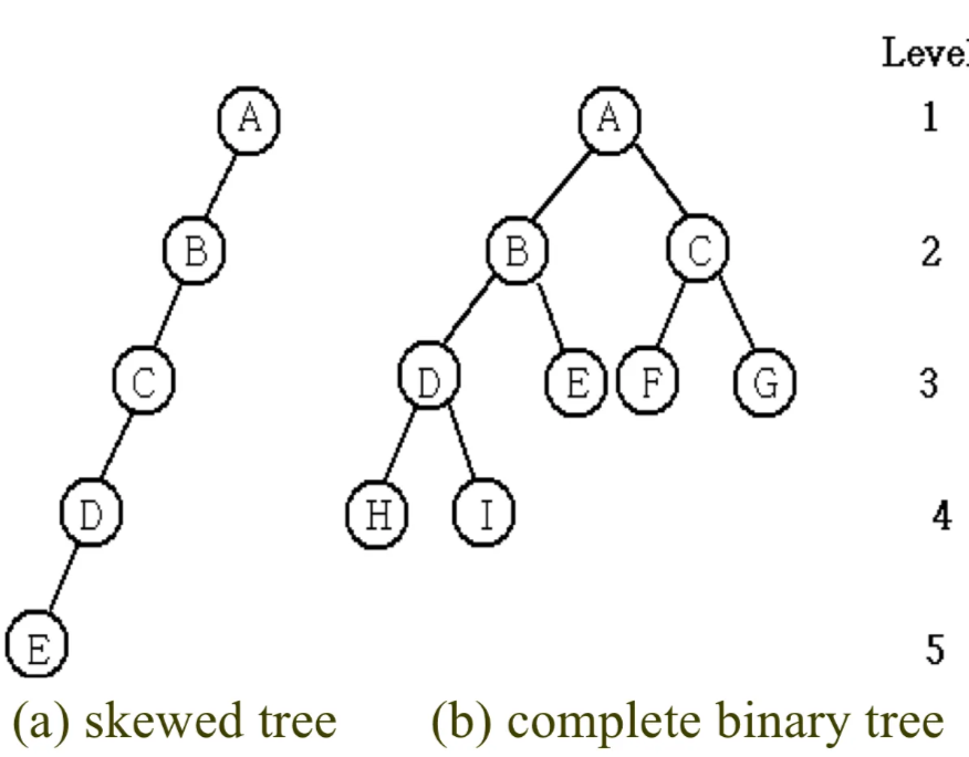 - level i에서의 최대 node 갯수는 2^{i-1}, \ i \ge 1