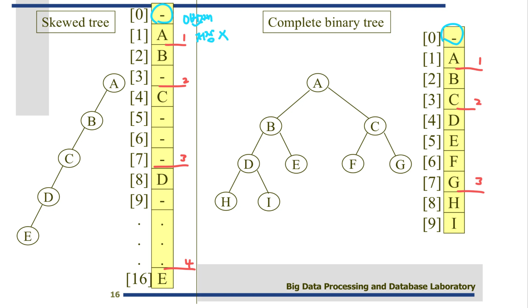 - 단점 : complete tree 가 아니면 공간 낭비가 많음.
