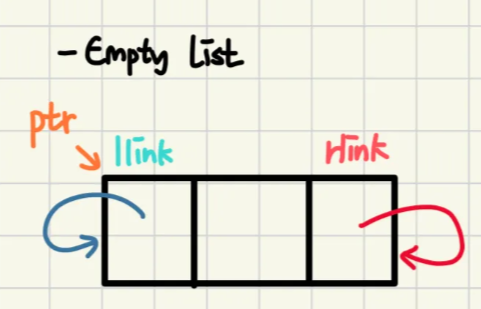 ptr == ptr->llink->rlink == ptr->rlink->llink
