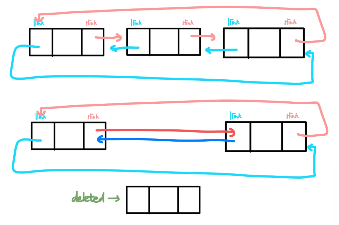 // doubly linked list에서 deleted 삭제