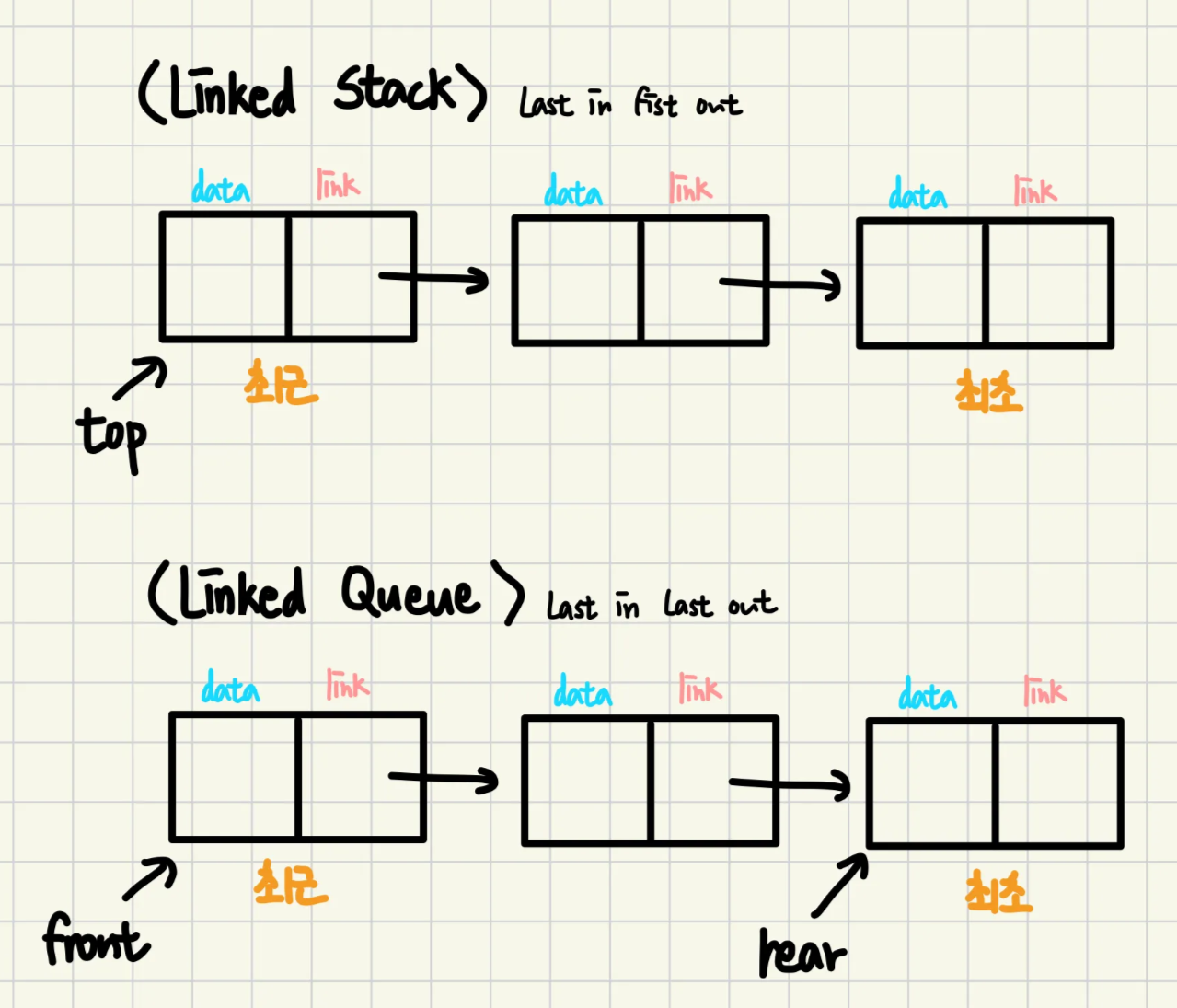 - Declarations ```c++ #define MAX_STACKS 10 // 총 stack의 갯수의 최댓값 typedef struct { int key; /* other fields */ } element; typedef struct _stack { element item; struct _stack *link; } stack; typedef stack *stack_pointer; // stack의 주소를 갖는 포인터
