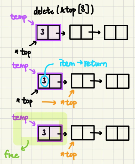 stack_pointer temp = *top; // call-by-ref, temp는 double pointer