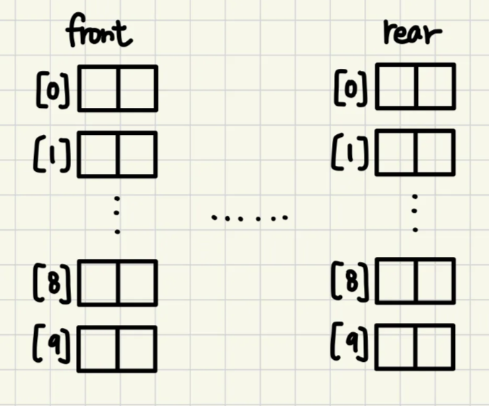 queue_pointer front[MAX_QUEUES], rear[MAX_QUEUES]; // queue 10개를 저장