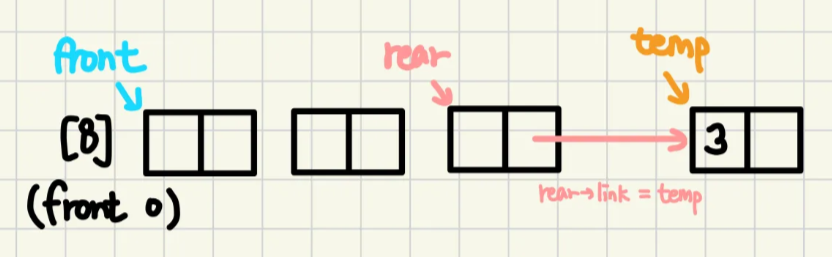 (*rear)->link = temp;