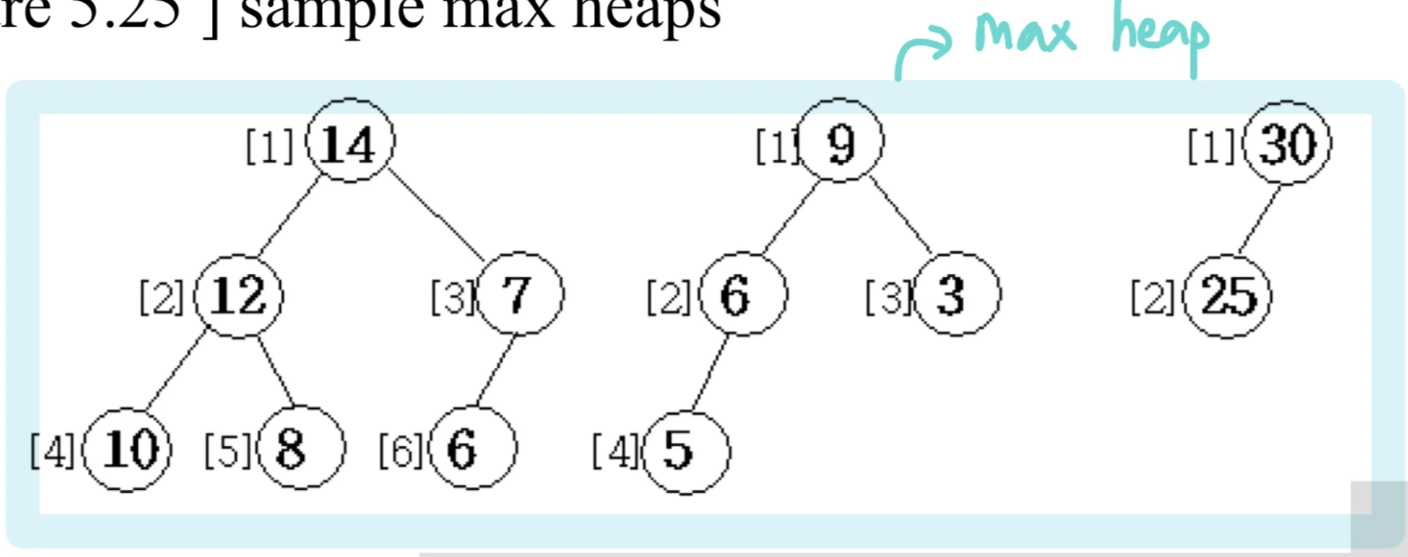 - Max tree : parent의 값이 child의 값보다 작지 않음(크거나 같음) & complete binary tree(왼쪽 부터 꽉 차 있음)