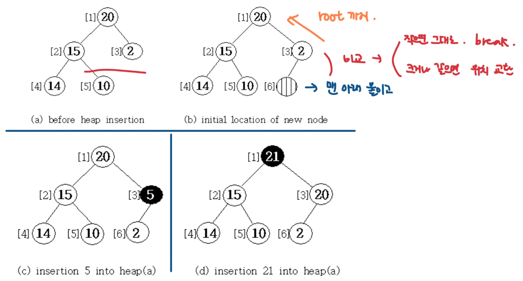 heap[i] = item; // 맞는 위치에 item 값 넣기.