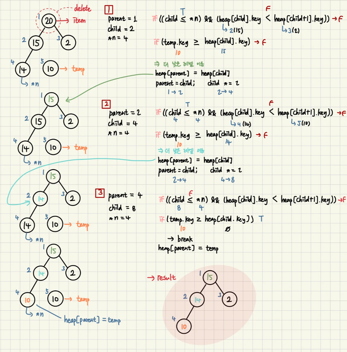 heap[i] = heap[i/2]; // 위치 교환