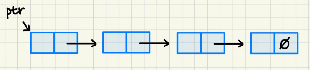 - ptr은 연결 리스트의 이름.