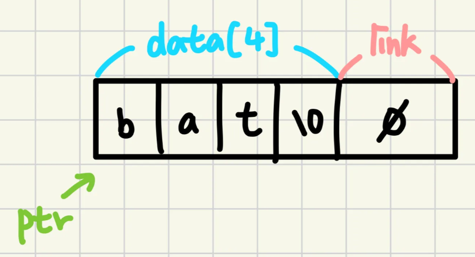 strcpy(ptr->data, "bat"); ptr->link = NULL;