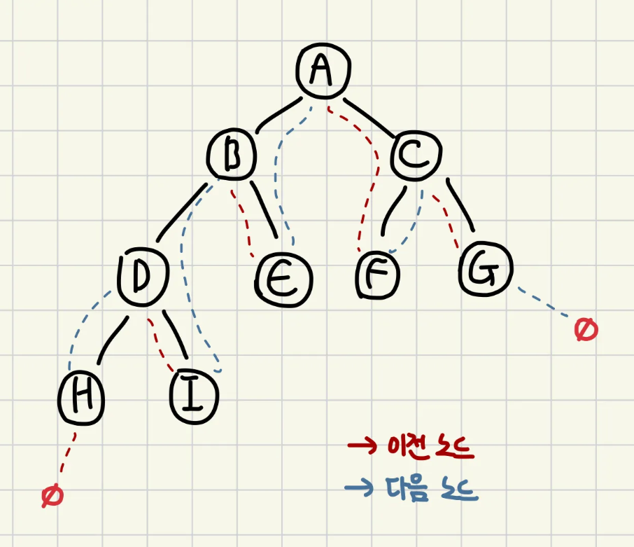 // 만약 child의 left_thread가 TRUE인 경우, 이전 노드의 오른쪽 스레드를 업데이트