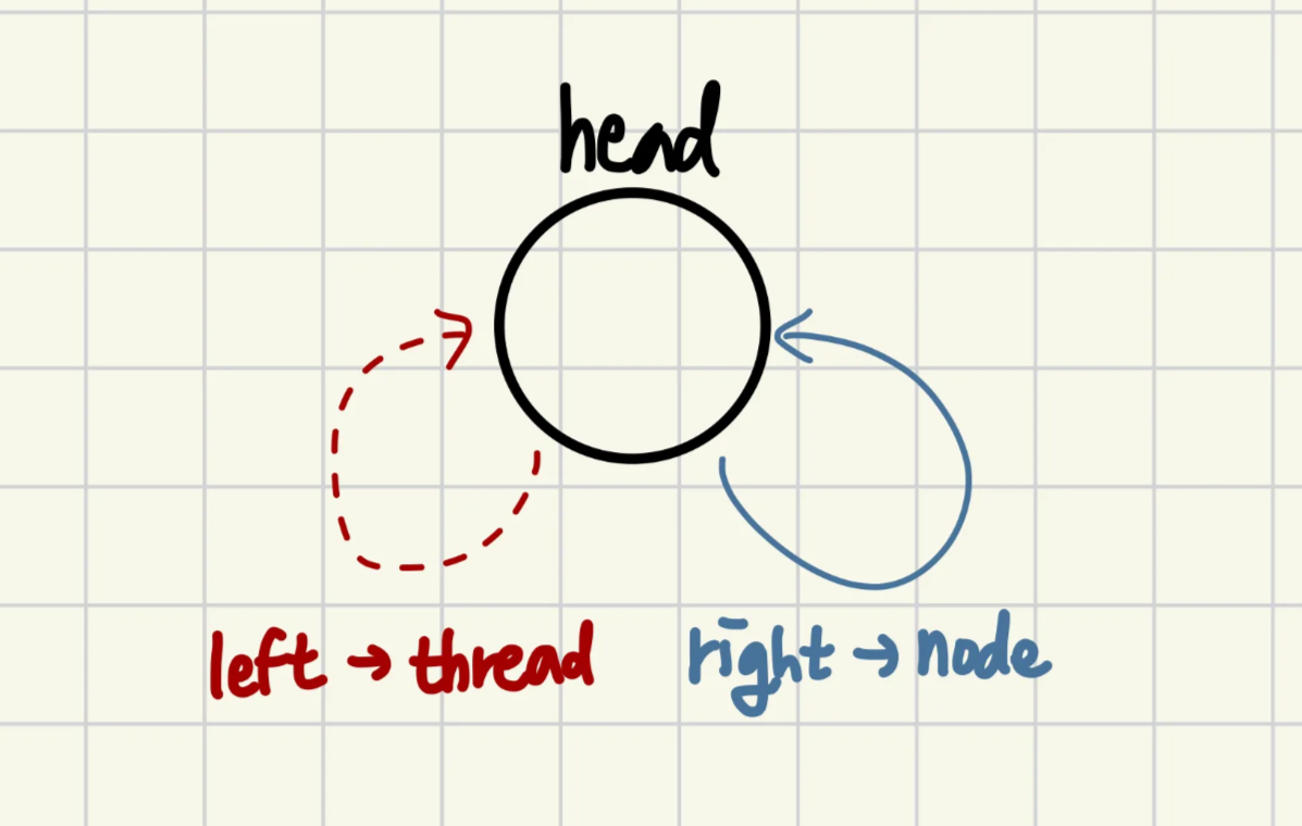- empty threaded tree → head node 만 존재