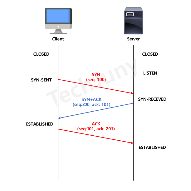 - LISTEN : 연결 대기 상태. SYN 세그먼트 기다리는 상태