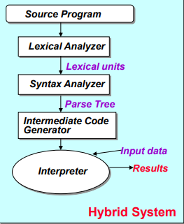 - source → 중간 언어 (intermediate language) 로 번역 → byte code 를 interpreting ex) Java